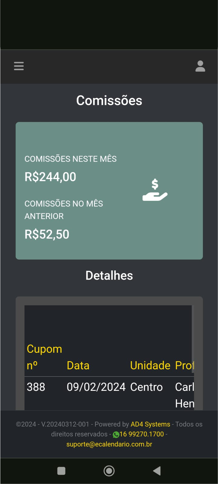 Controle visual de vendas, despesas, comissões.