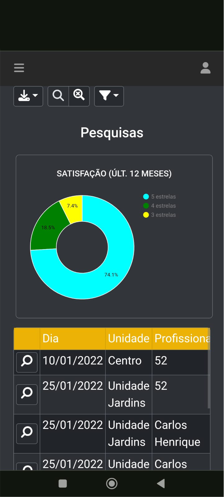 Pesquisas de satisfação integradas no sistema.